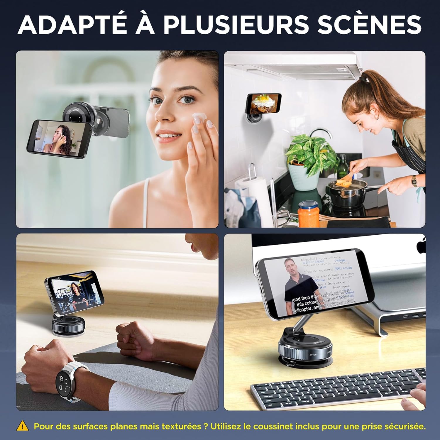 - Sécurité maximale : votre appareil reste parfaitement en place grâce à une fixation ultra-puissante, sans risque de chute.