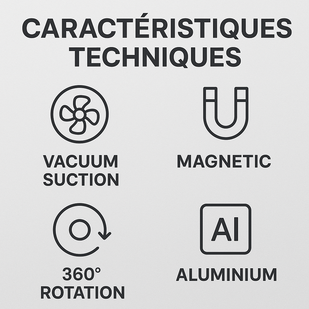 • Aimant + Ventouse Vacuum = meilleure fixation
