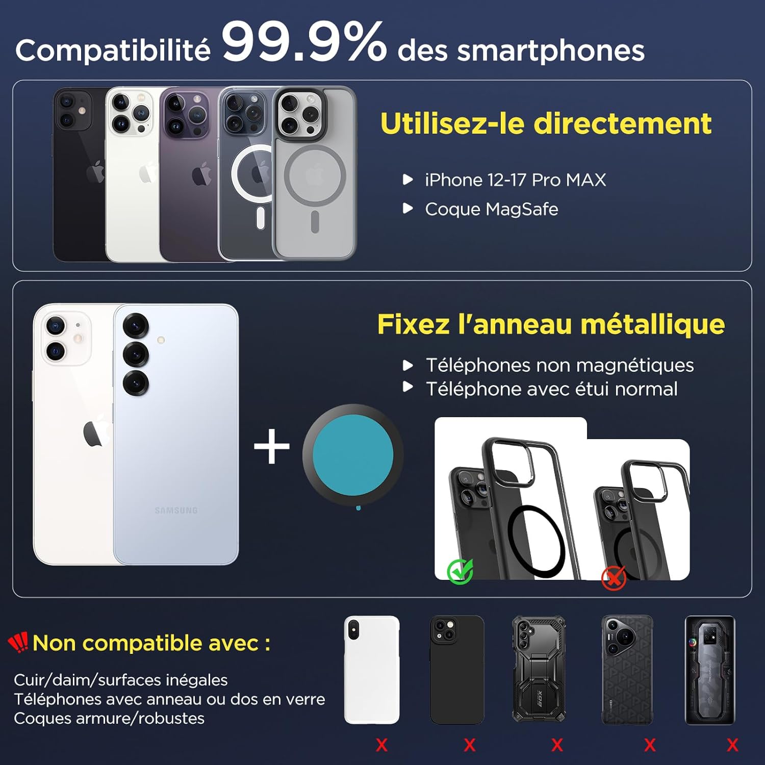 • 1× Anneau magnétique adhésif (pour smartphones non MagSafe)
